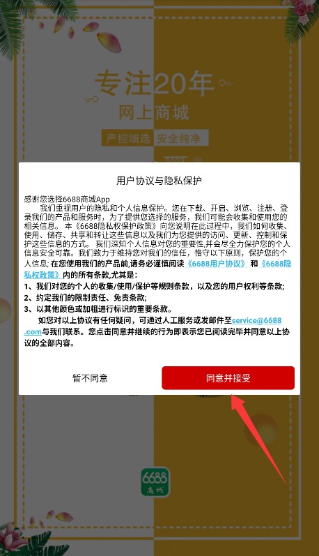 一、首次应用需浏览平台效劳条款与隐衷政策,确认后点击许可按钮进入应用。