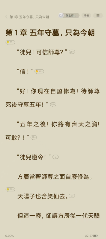 四、【语音朗读】:装备细致人声朗读性能,供应多种音色可选,束缚双眼,让你随时随地都能聆听小说!