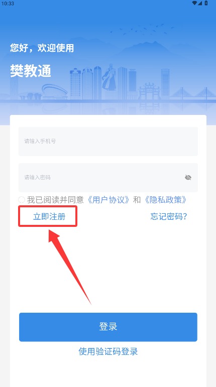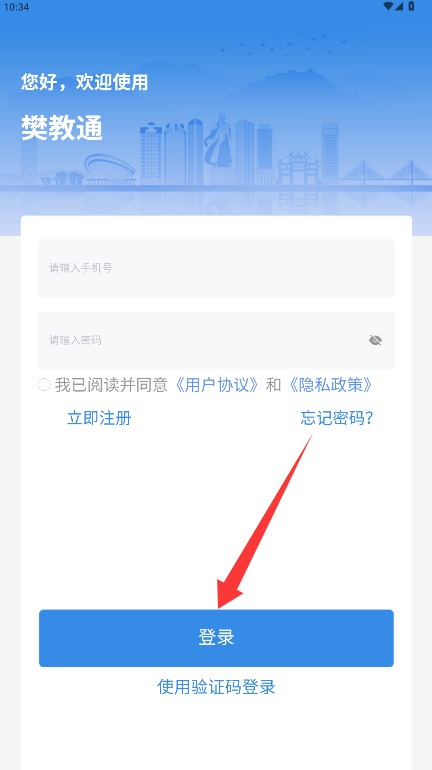 四、返回登录界面输入已经注册的手机号以及明码,勾选许可相干协定后点击登录就可。