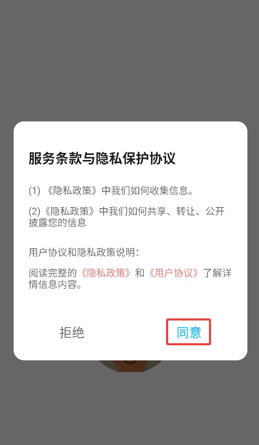 一、首次启动APP时需点击许可用户协定弹窗,方可进入主界面最先应用。