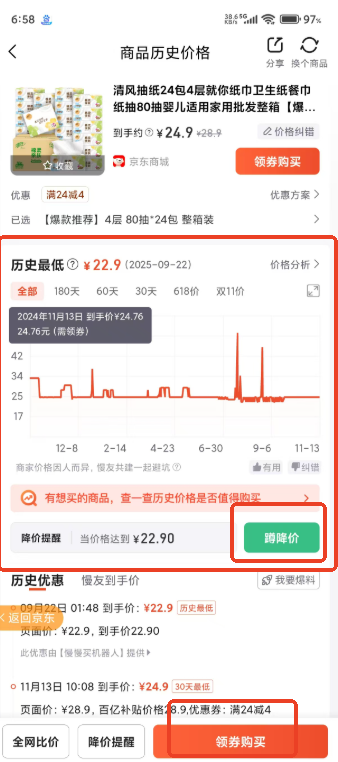3.就能够失去历史最廉价以及蹲提价展现,能够轻松用最廉价买到适宜的商品。