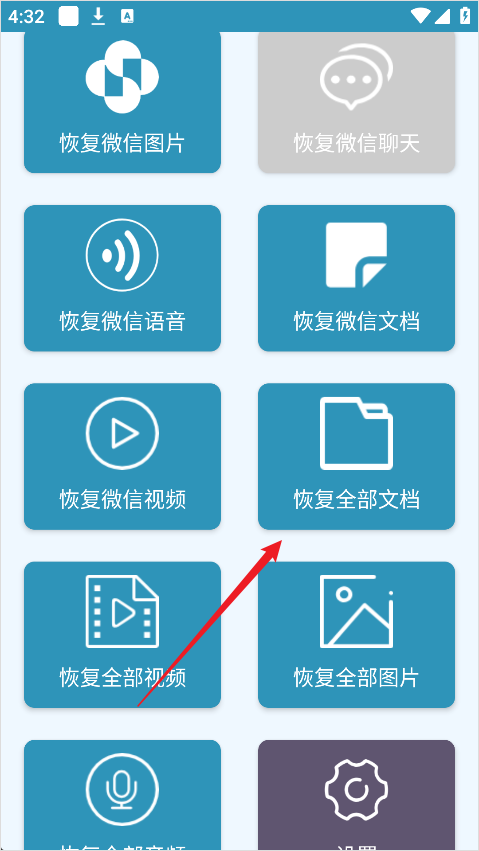 一、启动手机照片复原还原软件后,在主界面选取"复原全部文档"性能;