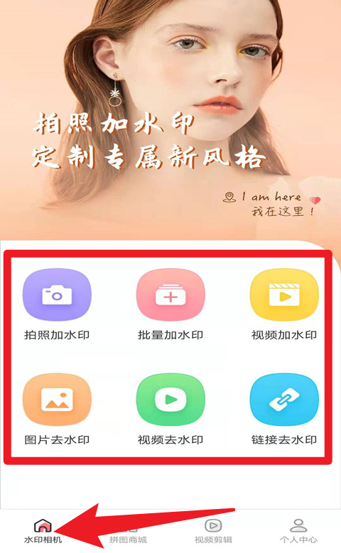 一、进入【相机】,可抉择照相加水印、批量加水印、视频加水印、图片去水印等性能。
