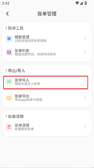二、账单导入:将支付宝、微信等平台账繁多键导入,定期导入可阻挠遗漏,与手动记载相互核查。