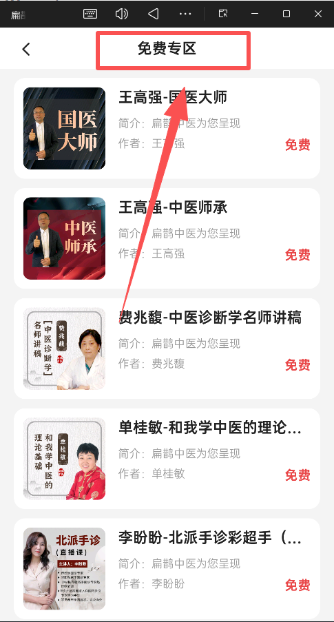 收费专区:供应少量收费入门课程,如《中医诊断年夜名师讲稿》、《国医巨匠》系列,适宜初学者以及喜爱者。