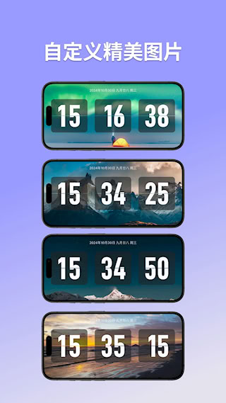 三、内置丰富共性主题 ,囊括典范翻页格调、简洁表盘设想及极简数字形式等多种时钟样式与配景,供您自在抉择搭配。