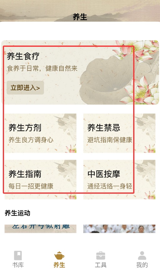 三、养生专区供应食疗方剂、中医推拿及禁忌指南等传统衰弱治理内容。