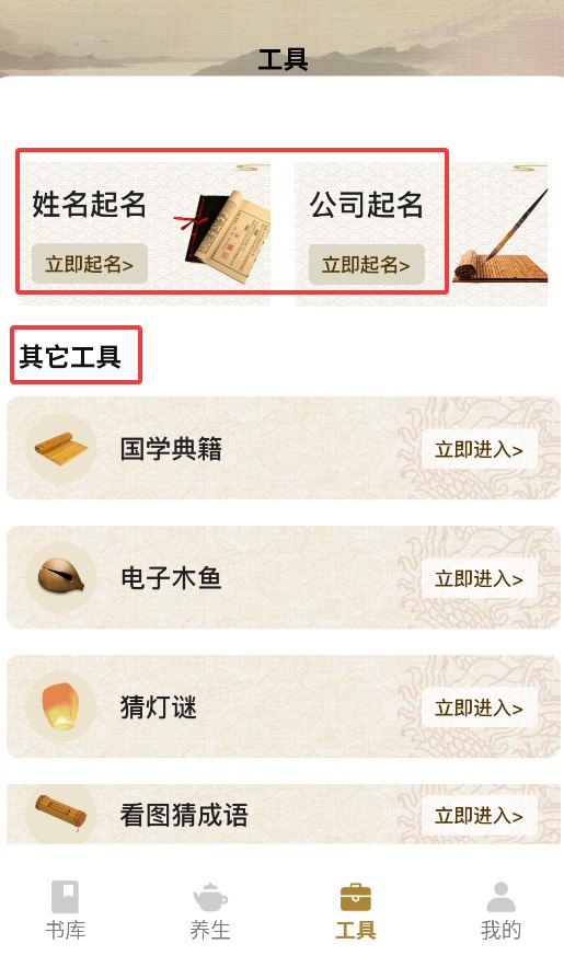 四、工具集蕴含姓名起名、公司命名及其余传统野蛮相干实用工具。