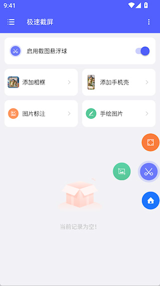 一、关上极速截屏app后,可启用悬浮球,在应历时便利触发