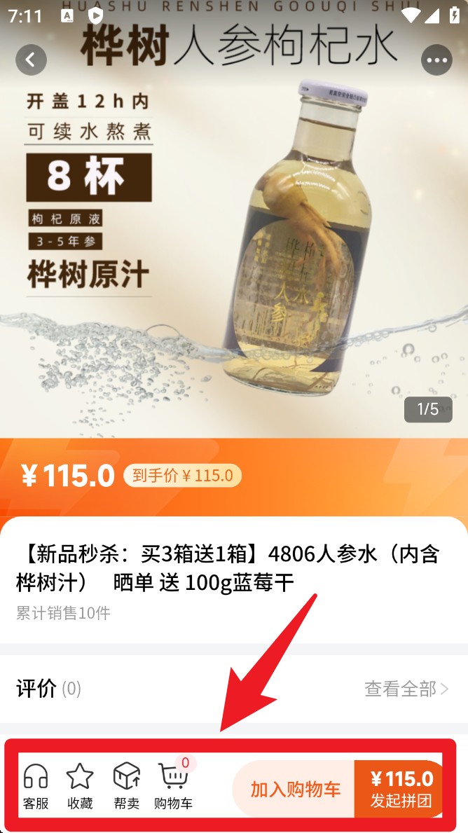 4. 进入商品详情页后,可检察价格与说明,并点击下方的退出购物车按钮,将商品退出购物清单并停止结算。