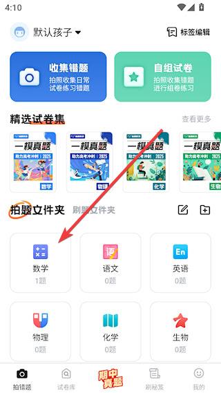 二、以【数学】为例,点击【数学】,进入后点击右下角相机标记,就能够对于问题停止拍摄