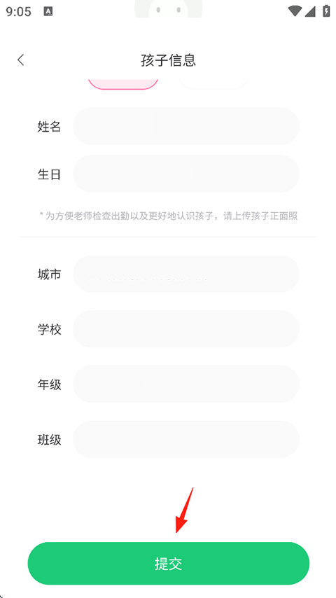 二、输入后代细致信息,随后点击提交实现绑定;
