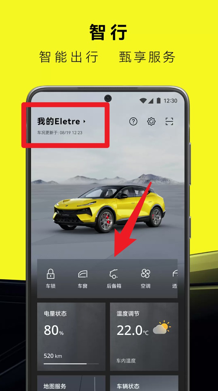 4. 关上智行页面后会显示绑定车辆状态,反对于短途管制车锁、空调、后备箱等性能并实时检察续航。