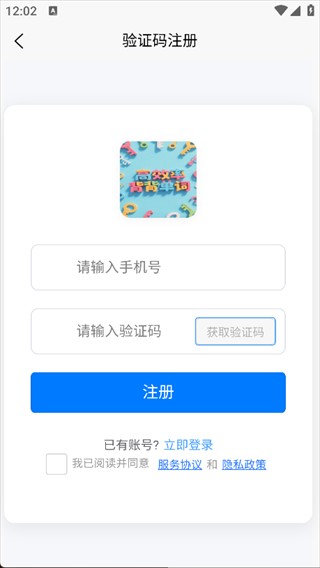 三、在注书页面输入集体手机号,获取并填写考证码,就可快速实现注册,进入应用主页面;