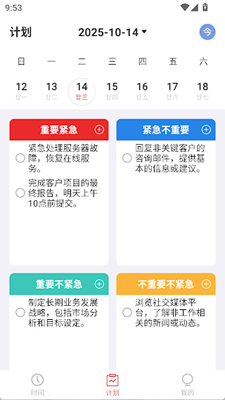 二、设想界面有日历以及四象限视图