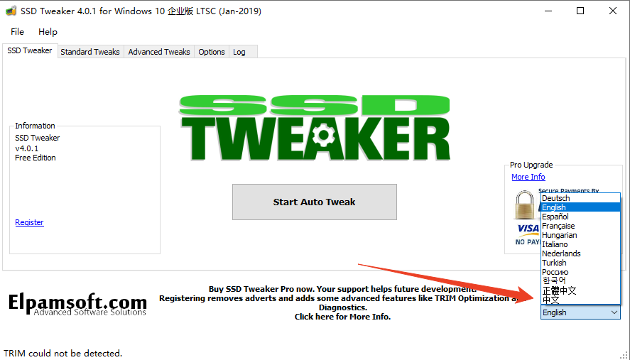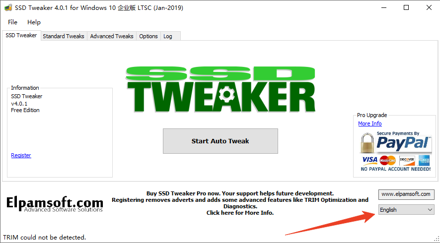 一、首次关上 SSD Tweaker 软件,界面默认显示为英文,无需放心,间接点击界面右下角的 “English” 按钮;