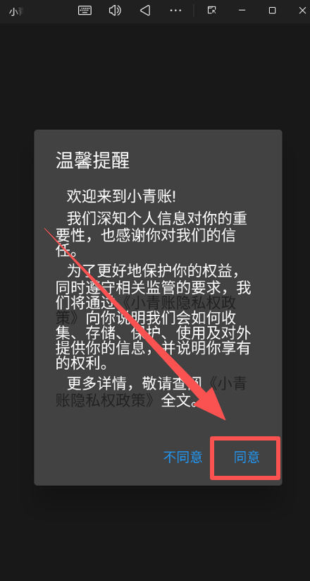 二、浏览并许可协定:首次应用会弹出《隐衷权政策》,浏览后点击“许可”就可最先应用。