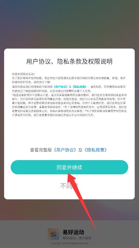 一、首次应用需浏览用户效劳协定与隐衷政策,确认后点击许可并连续选项进入应用。