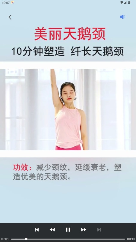 三、依据需要抉择细致练习的内容,如天鹅颈塑形、脊柱舒展等专项练习课程。