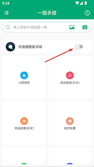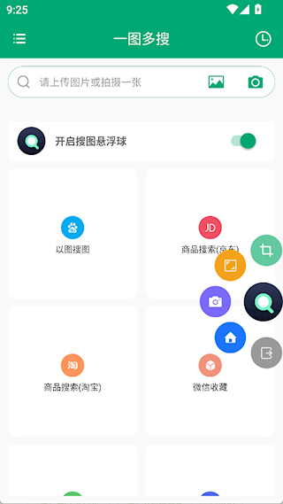 三、最后回到一图多搜app中从新开启搜图悬浮球,会在屏幕边际浮现悬浮球