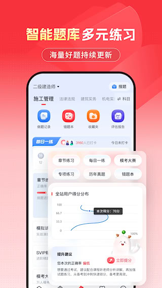 三、智能题库集成逐日一练、章节精讲、历年真题、模拟试卷等多元形式。反对于错题主动归档、条记标注及答题数据统计剖析性能。