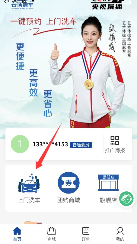 三、进入系统首页抉择上门洗车效劳性能模块,点击进入车辆信息填写详情操纵页面。