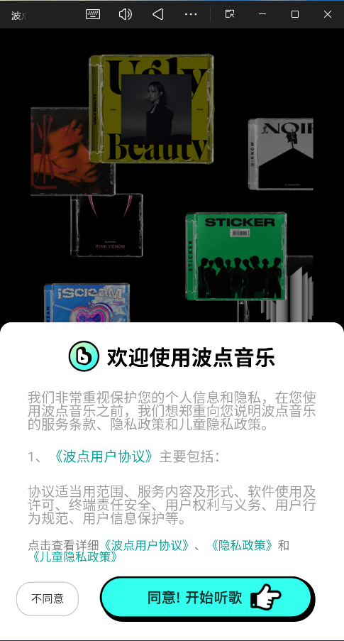 首次关上App,需要浏览并许可《用户协定》、《隐衷政策》等,而后点击“许可!最先听歌”。