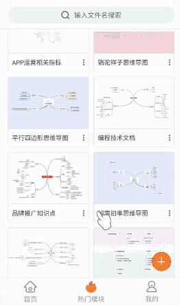 一、实现软件下载与账户登录落伍入主界面,在首页右下角点击橙色加号图标,就可建立全新的脑子导图文档。