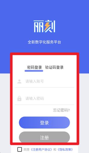 一、用户首次应用丽刻平台需通过输入账号及明码或者考证码形式实现登录注册操纵流程。