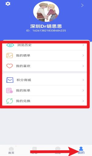 四、进入我的页面可检察浏览记载、喜爱商品、积分商城、账户账单及兑换记载等集体信息。