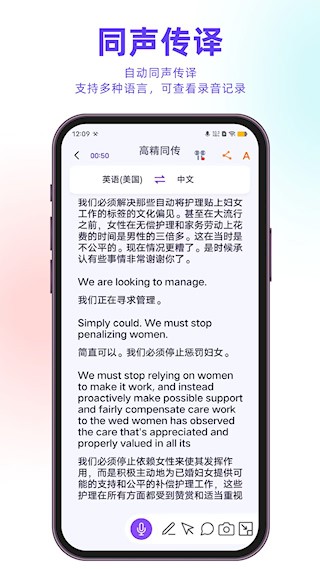 三、语音翻译:间接通过语音录入实现立即翻译,不便在不不便打字场景下应用,轻松实现文言交换。