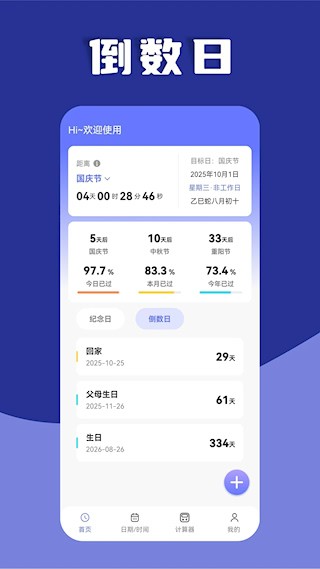 日期盘算器是一款时日治理工具,体积小巧界面简洁,集成时日、日期等多种盘算工具,涵盖倒数日展现、时日单元换算等性能,操纵设想直不雅,性能分类清晰,上手难度低,无需简单步调就可实现盘算,内置共性化皮肤与配景自界说选项,结婚分比方审美偏偏好,搭配桌面小部件与展现性能,让时日治理更便利。