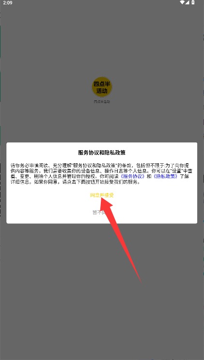 一、首次应用需浏览用户协定与隐衷政策,确认无误后点击许可并接受按钮进入。