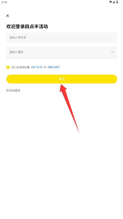 二、在登录页面输动手机号码以及登录明码,勾选许可相干条款后点击提交实现登录。