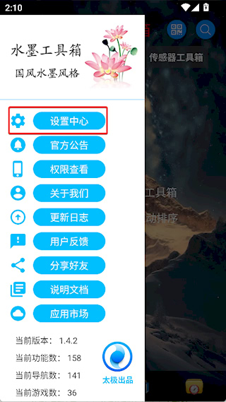 太极工具箱是一个聚合型工具应用,整合多类实用性能与娱乐模块,遮蔽平常工具、图片解决、开辟协助等方面,全程无广告与三方链接,界面接收分类式构造,能够切换主题格调,体积小巧运行流畅,操纵逻辑清晰,各种性能易于查找,适配分比方场景下的工具调用。