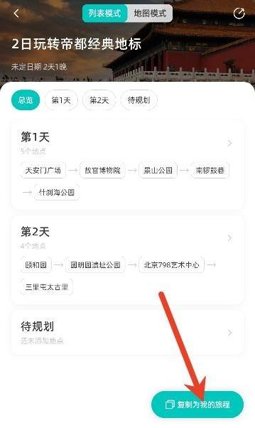 四、点击页面下方的【复制为我的途程】按键,以后可依据自身需要编纂途程的时日、所在等信息。
