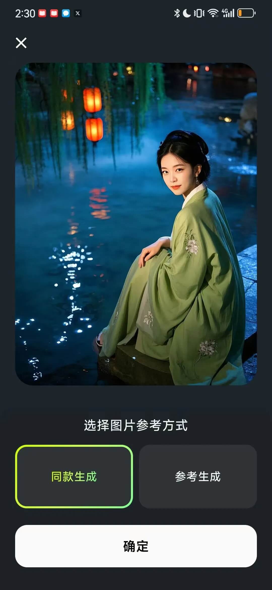 下列图,上传参考图后,抉择同款天生,便是调换你的脸,抉择参考天生,便是参考这张画面的元素以及色调