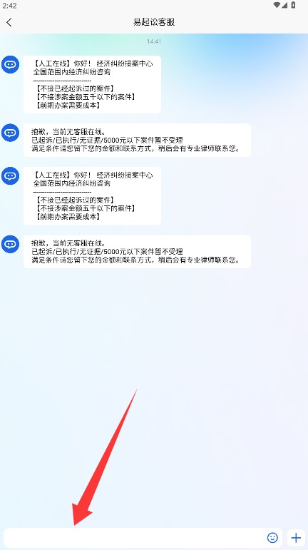 四、在咨询对于话框输入需要解答的法律问题,发送后就可获取业余细致的复原。