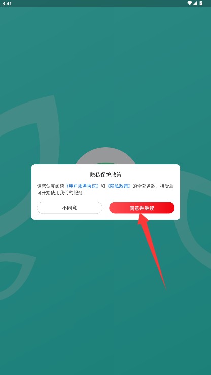 一、首次应用需浏览用户协定与隐衷政策,确认无误后点击许可并连续按钮进入。