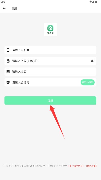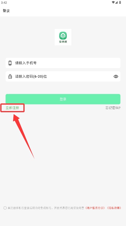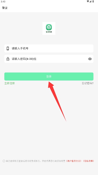 四、返回登录界面输入已经注册的手机号以及明码后,确认效劳条款后就可胜利登录。