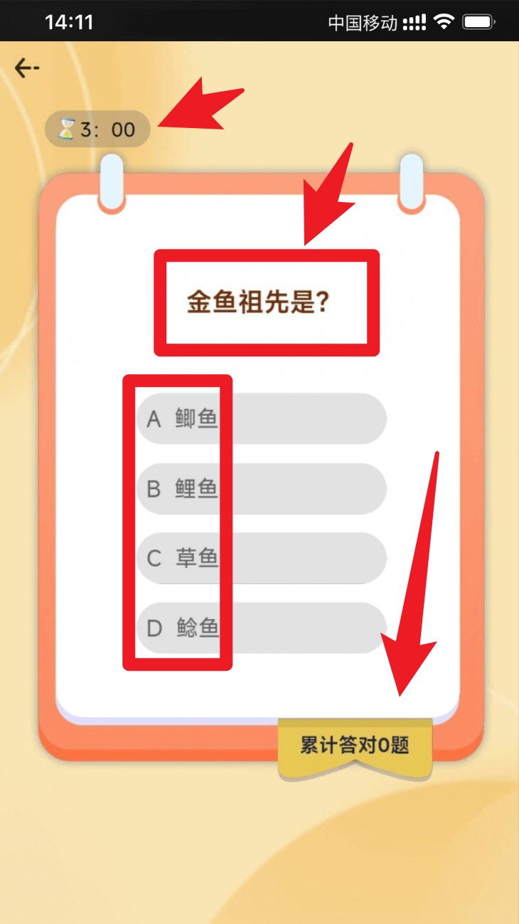 3. 回到首页点击下方伶俐问答,就可进入答题页面,在限制时日内抉择准确谜底并累计答题数。