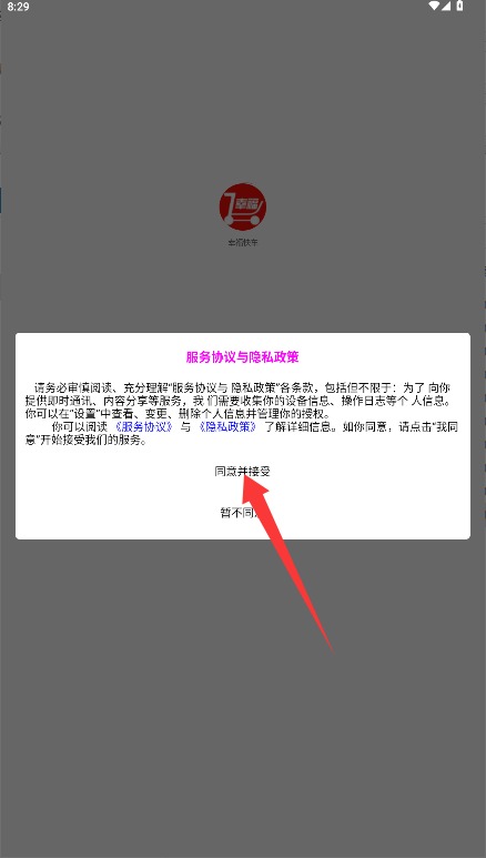 一、首次应用需浏览用户协定与隐衷政策,确认无误后点击许可并接受按钮进入。