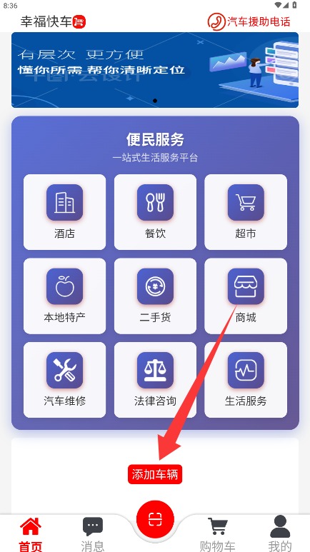 三、进入应用主界面后,点击增添车辆性能最先停止新车辆的信息注销操纵。