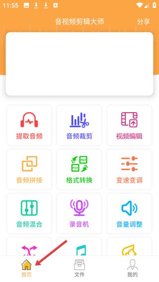 一、点击首页,供应提取音频、音频裁剪等多样剪辑性能,界面简洁,操纵便利。