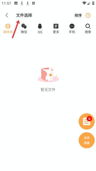 二、点击文件抉择页面,可从媒体库、微信、QQ等多渠道选取文件,以后暂无文件显示,有排序等性能。