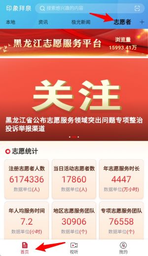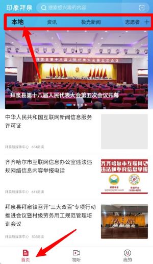 一、关上APP,点击首页顶部的内陆栏目,就可浏览拜泉内陆音讯消息与威望信息宣布内容。