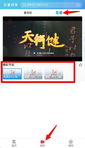 四、在视听栏目中切换至直播,可在线寓目黑龙江卫视等频道的精美电视直播节目。