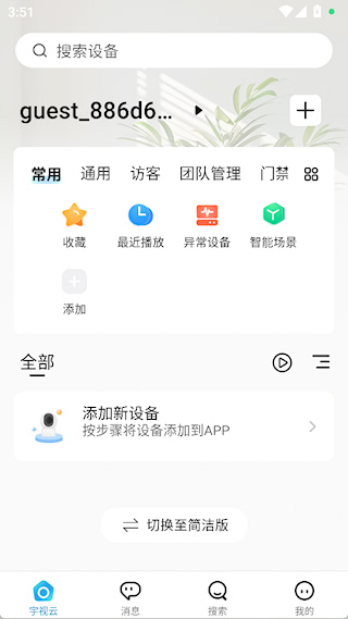一、关上宇视云app,登录落伍入首页,点击增添新设施