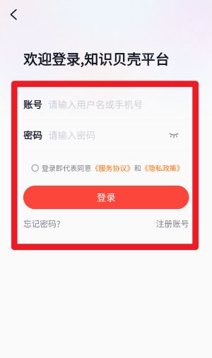 一、关上知识贝壳平台后,用户需先输入用户名或者手机号及明码实现登录操纵,确保账号权限可用。